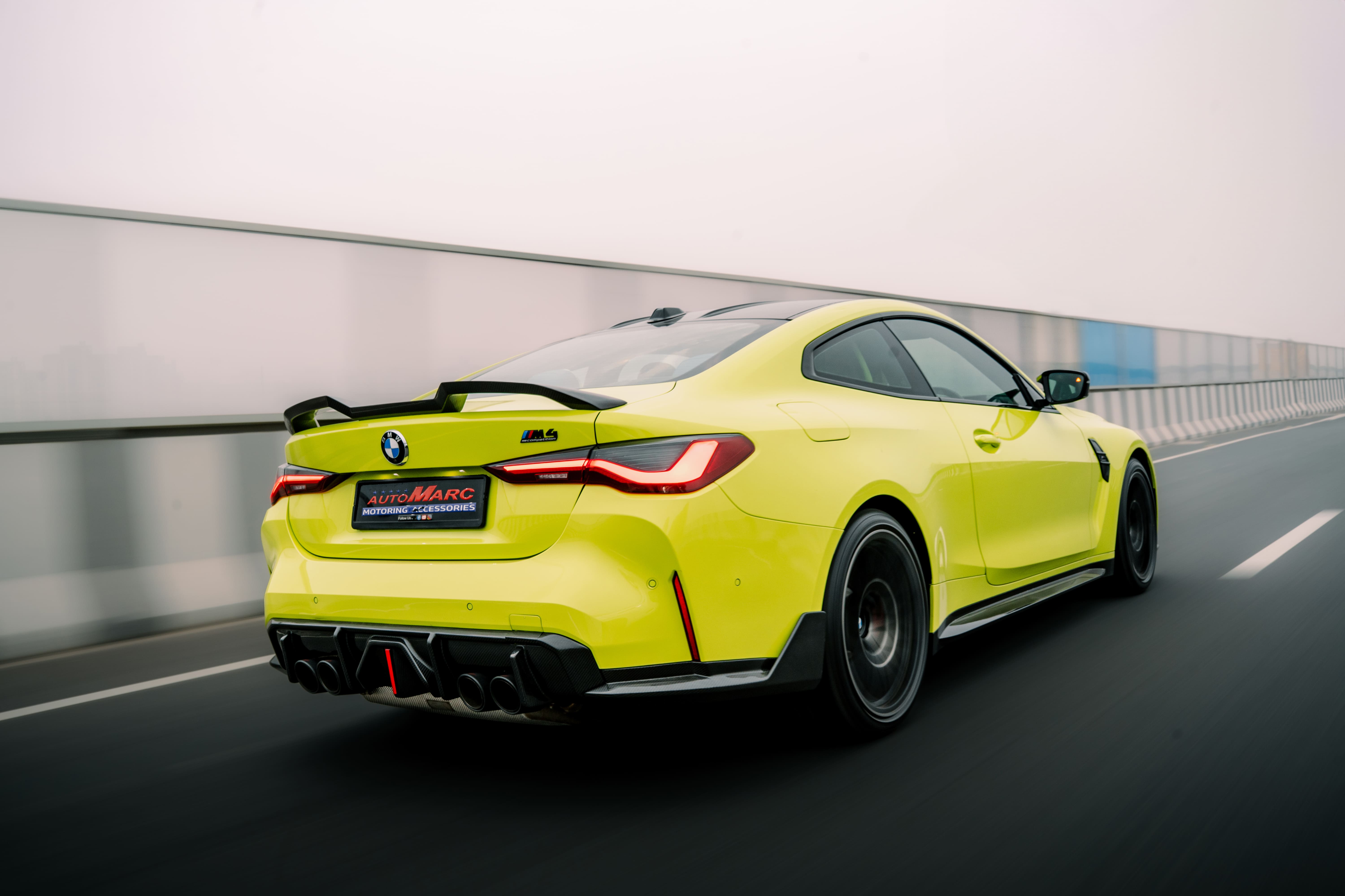 The combination of carbon fiber aero components and a performance exhaust system transforms the BMW M4 into a track-inspired street machine with a sharper and more aggressive presence.
